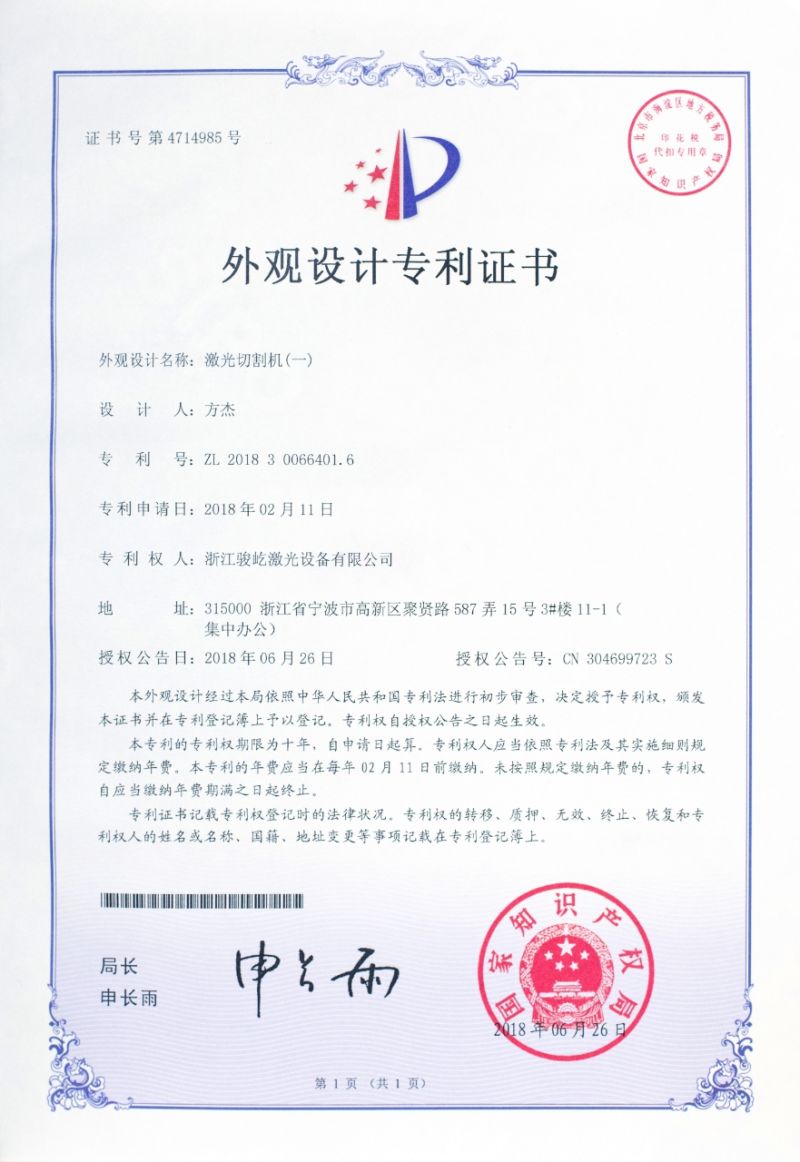 外觀設計專利證書